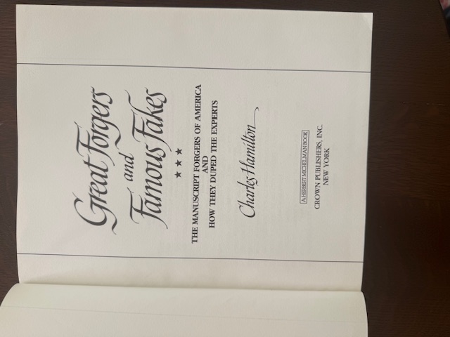 Great Forgers and Fabulous Fakes by Charles Hamilton. Printed in 1980.