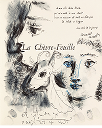 Open for bidding 8-29 AprilApr. 8-29: Delaunay, Sonia — Blaise Cendrars. La Prose du Transsibérien. 1913. €120,000 to €180,000.Apr. 8-29: Picasso, Pablo — Georges Hugnet. La Chèvre-feuille. 1943. €80,000 to €120,000.Apr. 8-29: Schmied, François-Louis ─ Joseph-Charles Mardrus. Cantique des cantiques. 1925. €30,000 to €50,000.Apr. 8-29: Bonnard, Pierre — Paul Verlaine. Parallèlement. 1900. €30,000 to €50,000.Apr. 8-29: Derain, André — Guillaume Apollinaire. L’Enchanteur pourrissant. 1909. €20,000 to €30,000.
