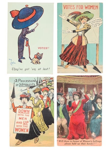 A variety of ephemera relating to Women’s Suffrage including 17 postcards for and against Votes for Women sold for £4,352.00 ($5,693) at Bonhams on Nov 20.